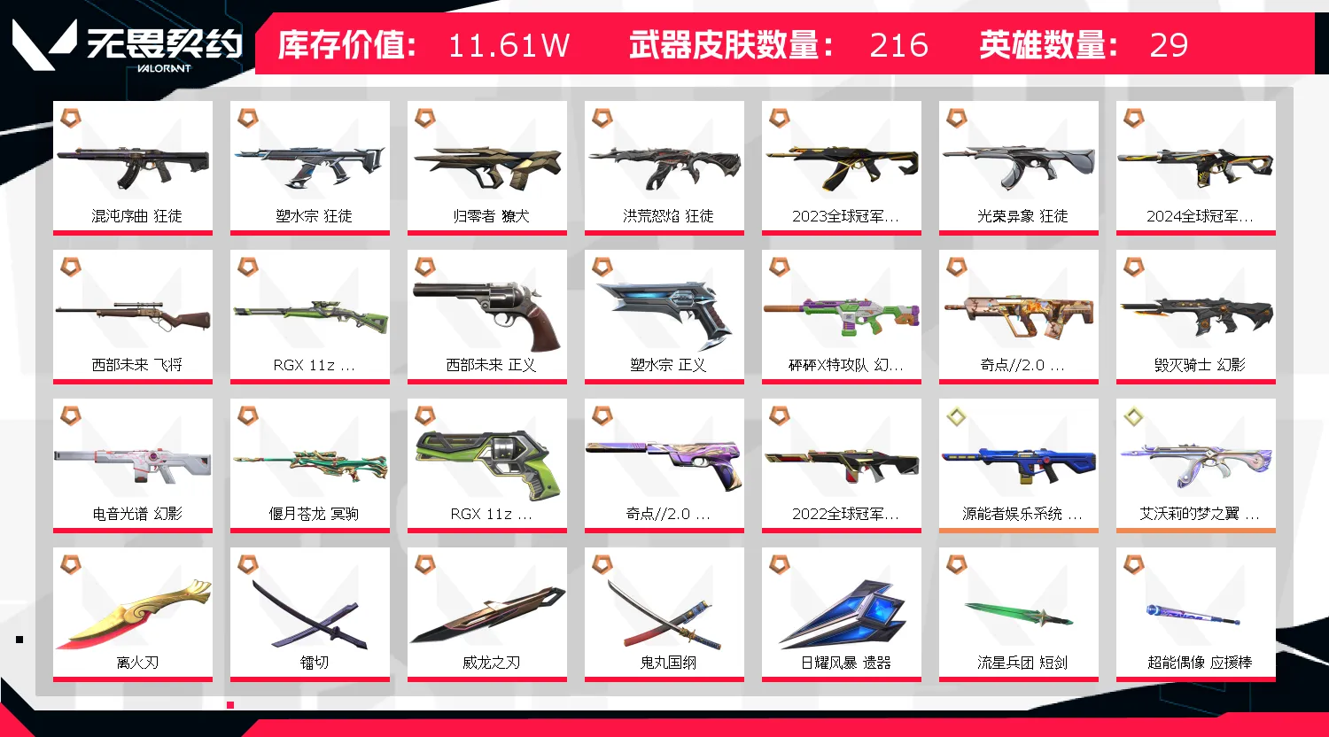 - 武器皮肤数量: 216