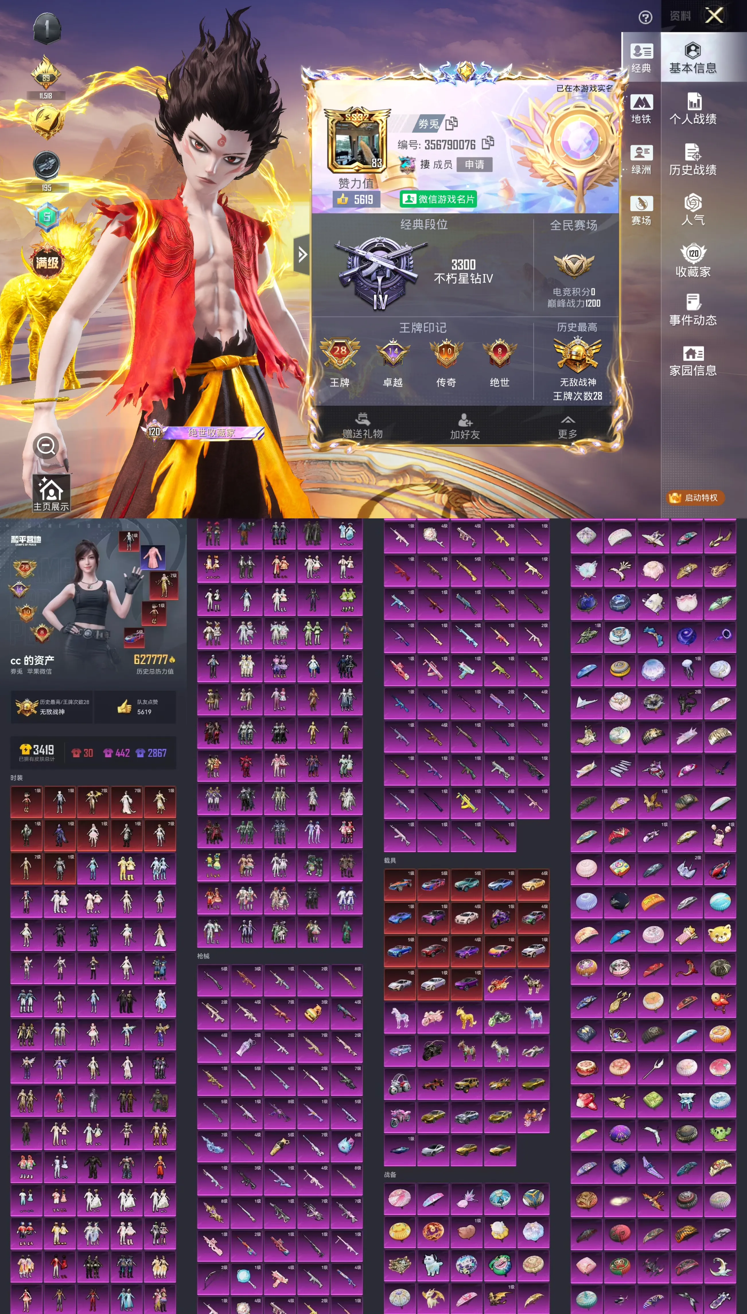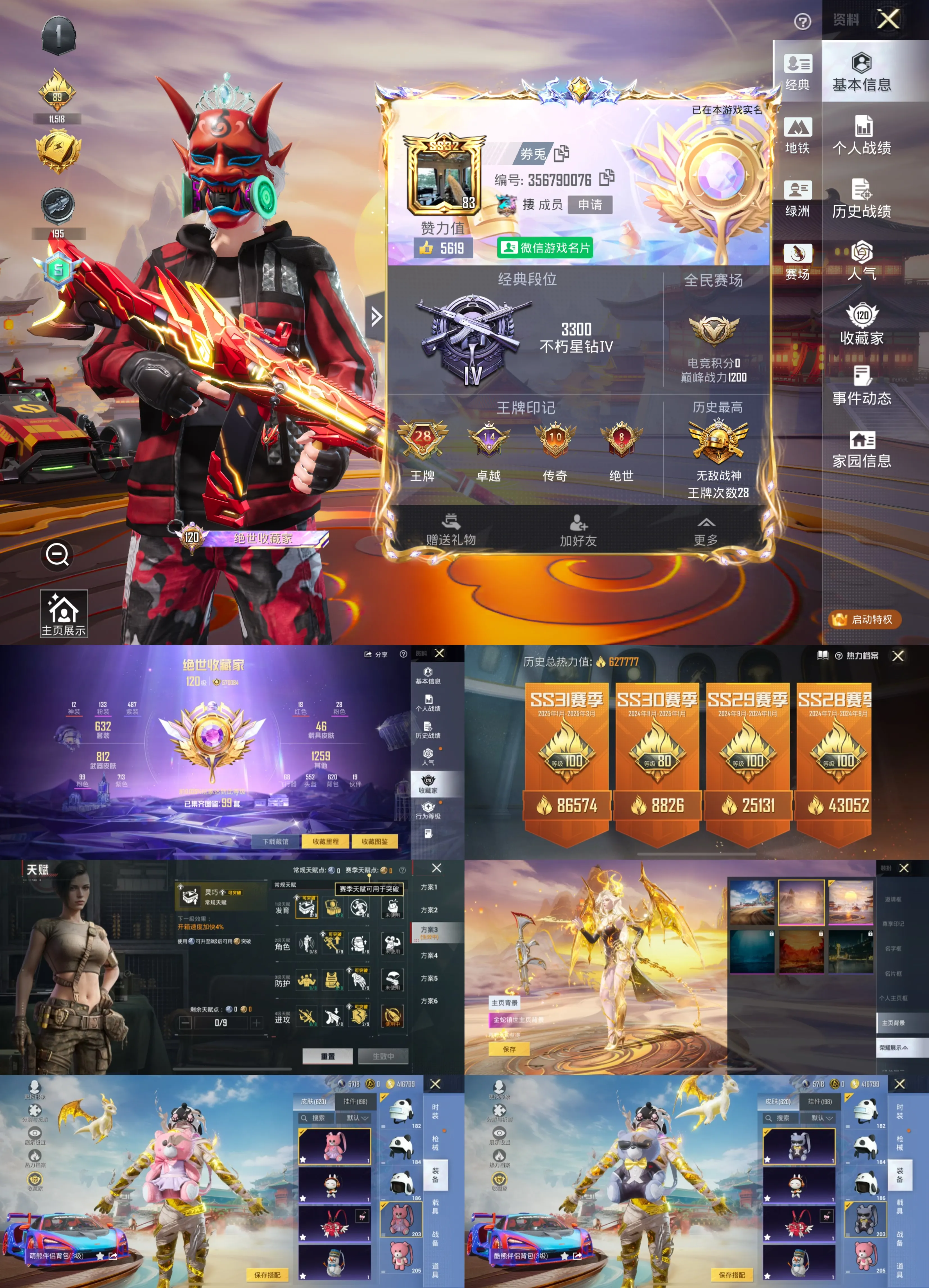 4套满级红装 12套红 满级黄金宝马 18辆升级车 15把升级枪 老101 62万热力值 满素材