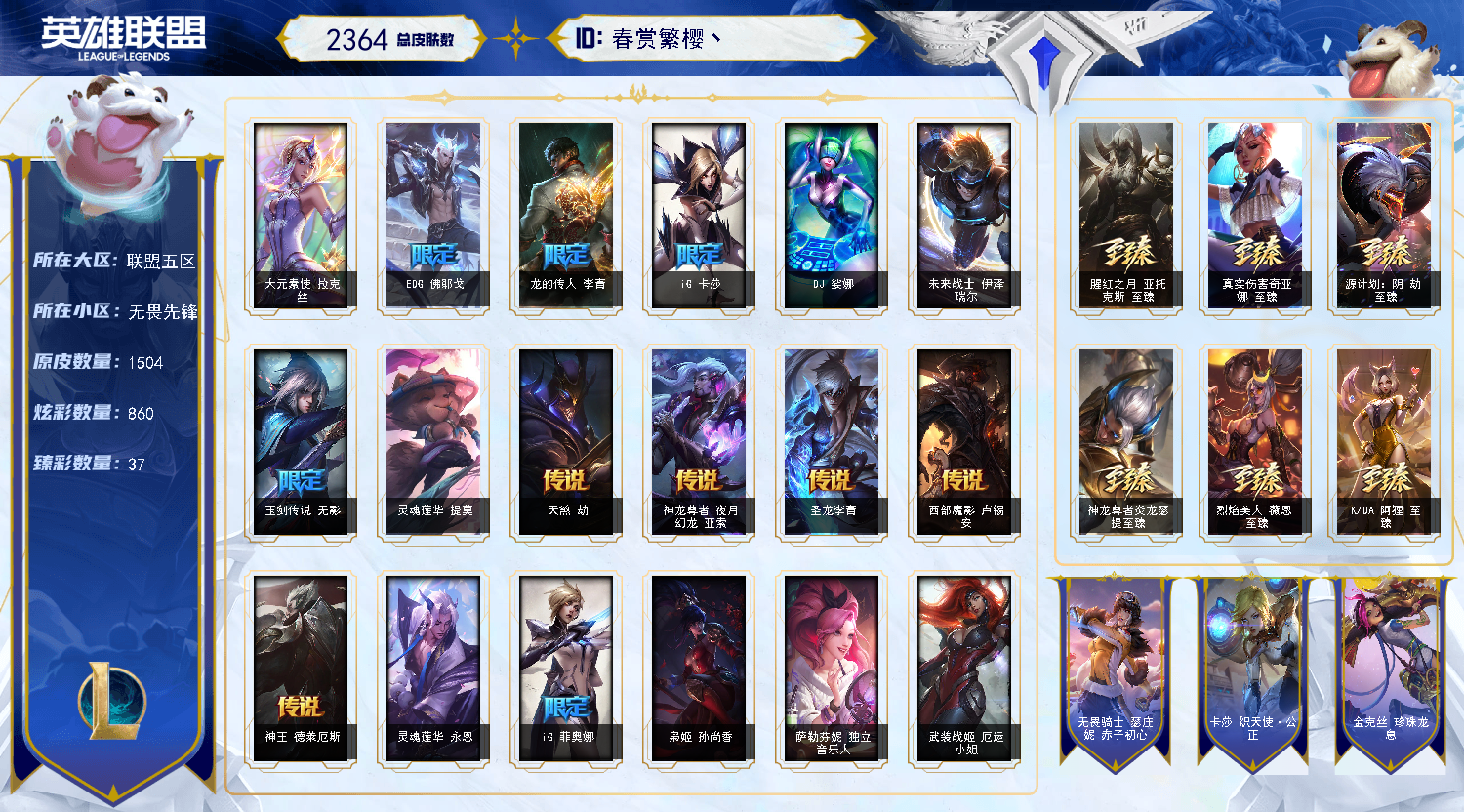 卧虎藏龙贾克斯/龙的传人李青/玉剑传说无影/北极星神戴安娜/2013 SKT T1冠军套/2015 SKT T1冠军套/2016 SKT T1冠军套/DRX冠军套/IG冠军套/SSG冠军套/DWG冠军套/暗杀星冠军套/SSG冠军套/FNC冠军套/EDG冠军套