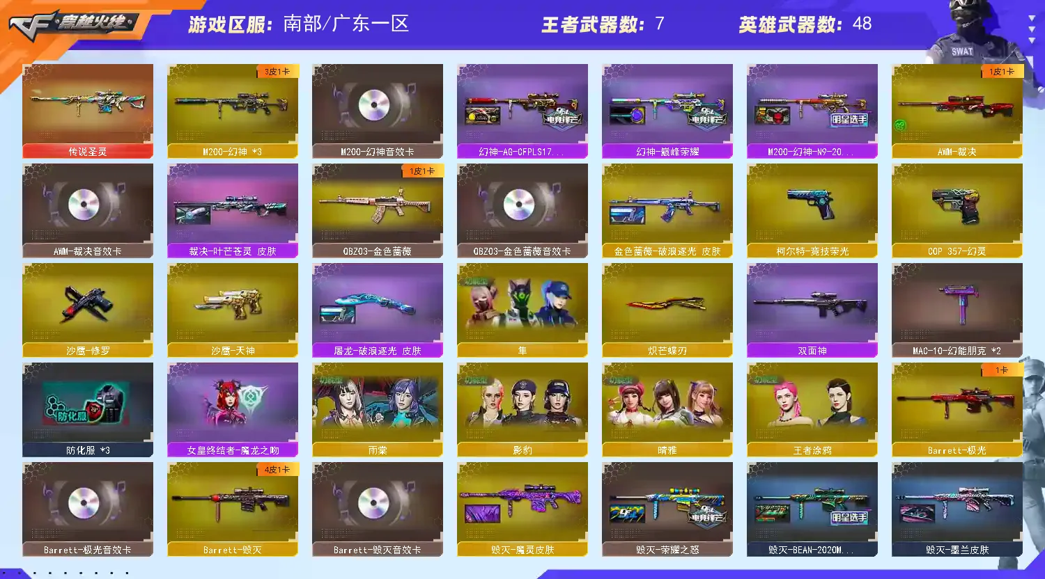 传说圣灵✅幻神三件套(5皮)✅QBZ裁决三件套4皮✅炽芒蝶刃✅朱雀✅王者风神极光竞技荣光柯尔特4防隼