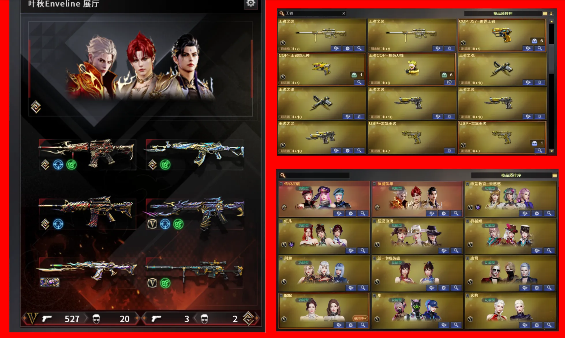 🔥稀有虎牙皮肤、稀有斗鱼皮肤、海量王者武器、幻神8皮+音效卡、毁灭20皮、星神5皮+音效卡、裁决5皮+音效卡、炼狱8皮+音效卡🔥