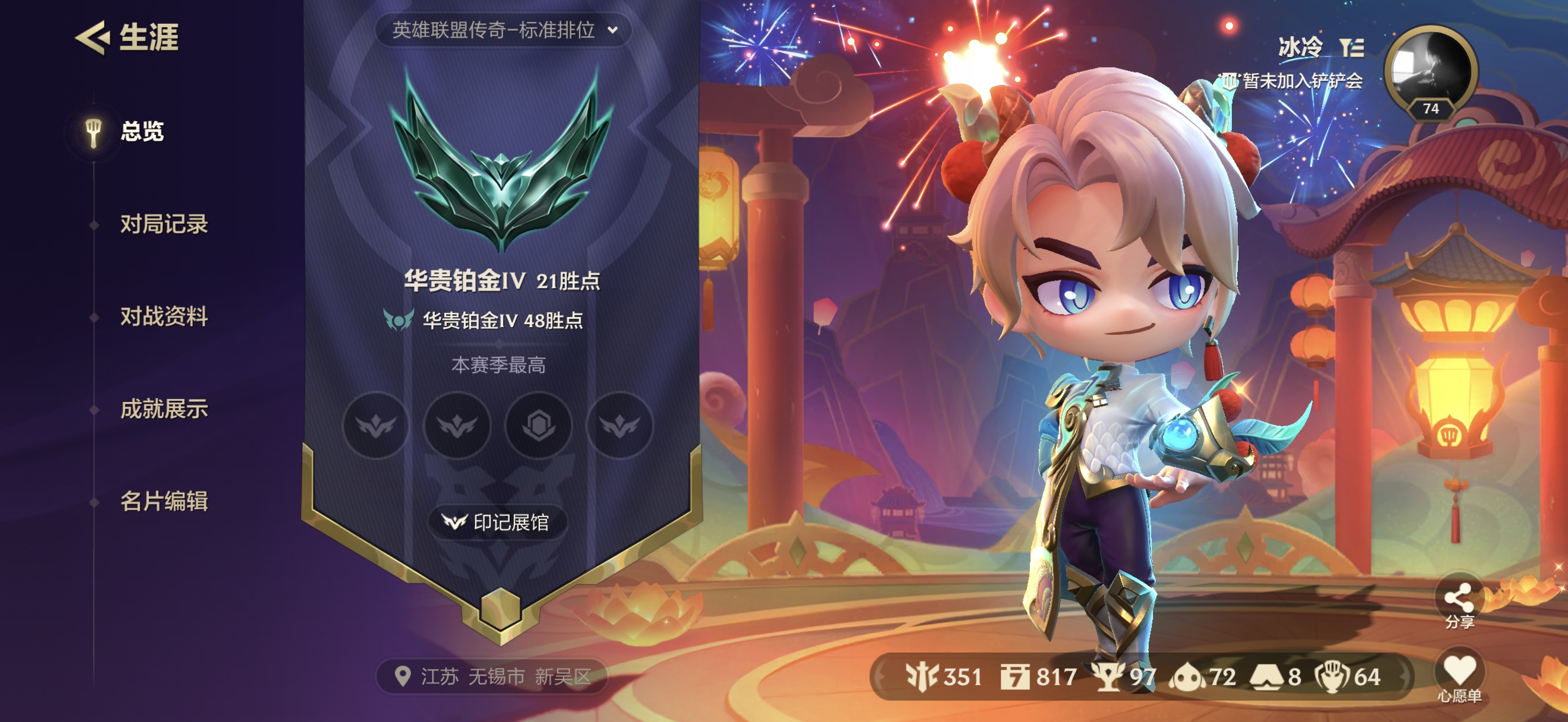 极品id冰冷,满配喵喵妙妙窝,龙年EZ,灵魂莲花永恩,玉剑传说艾瑞莉娅,可以打排位铂金