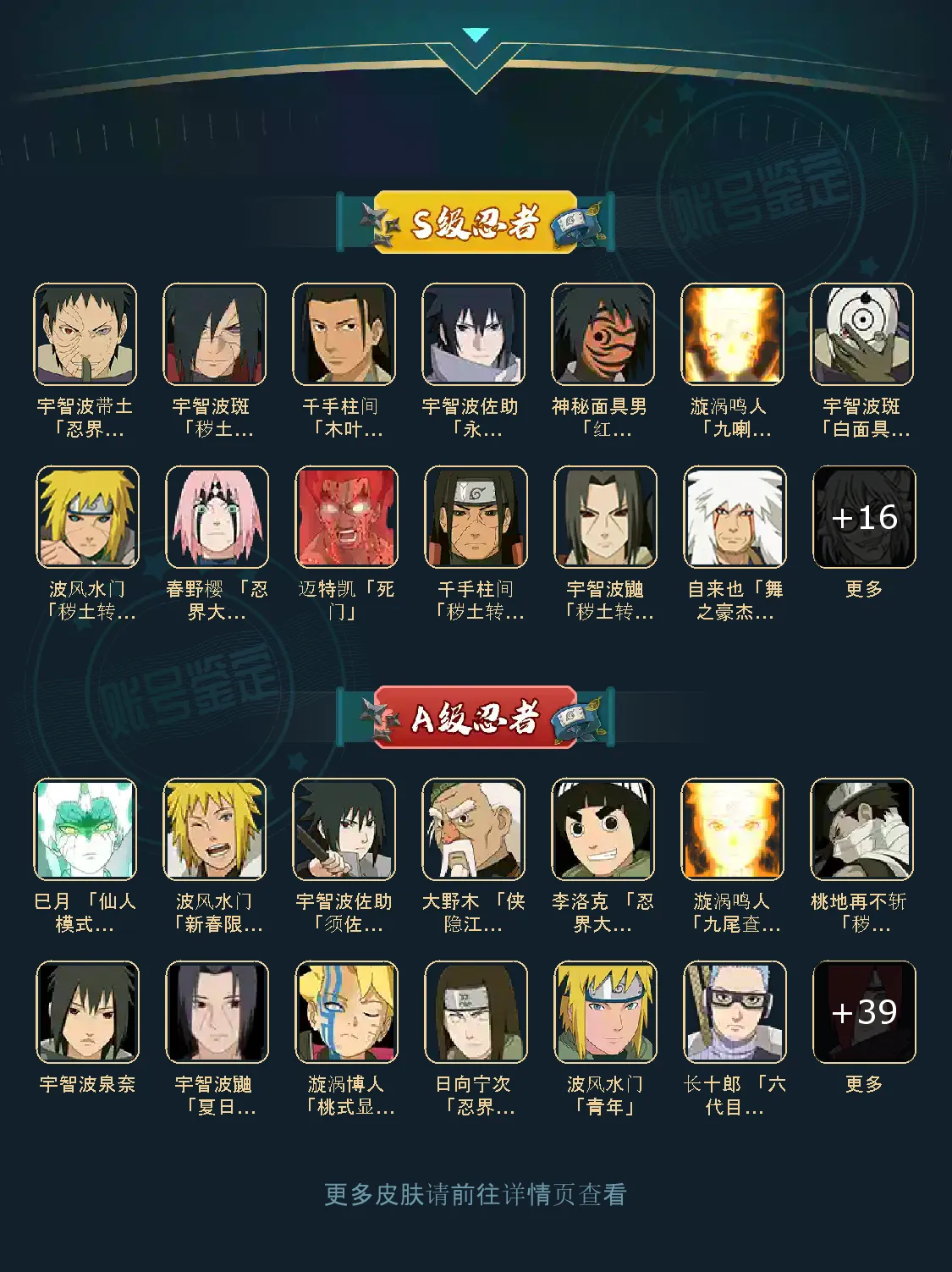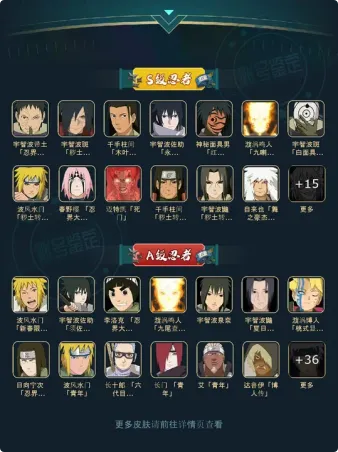 战力:1336W+;S忍26个;A忍44个,通灵兽20个,S忍:九喇嘛鸣人永恒万花筒佐助忍战樱豪杰自来也大蛇丸百豪纲手普通纲手死门凯波风水门秽土水门秽土猿飞千手扉间秽土扉间秽土柱间木叶创立柱间秽土斑秽土解斑秽土鼬神秘面具男白面具忍战带土红夜