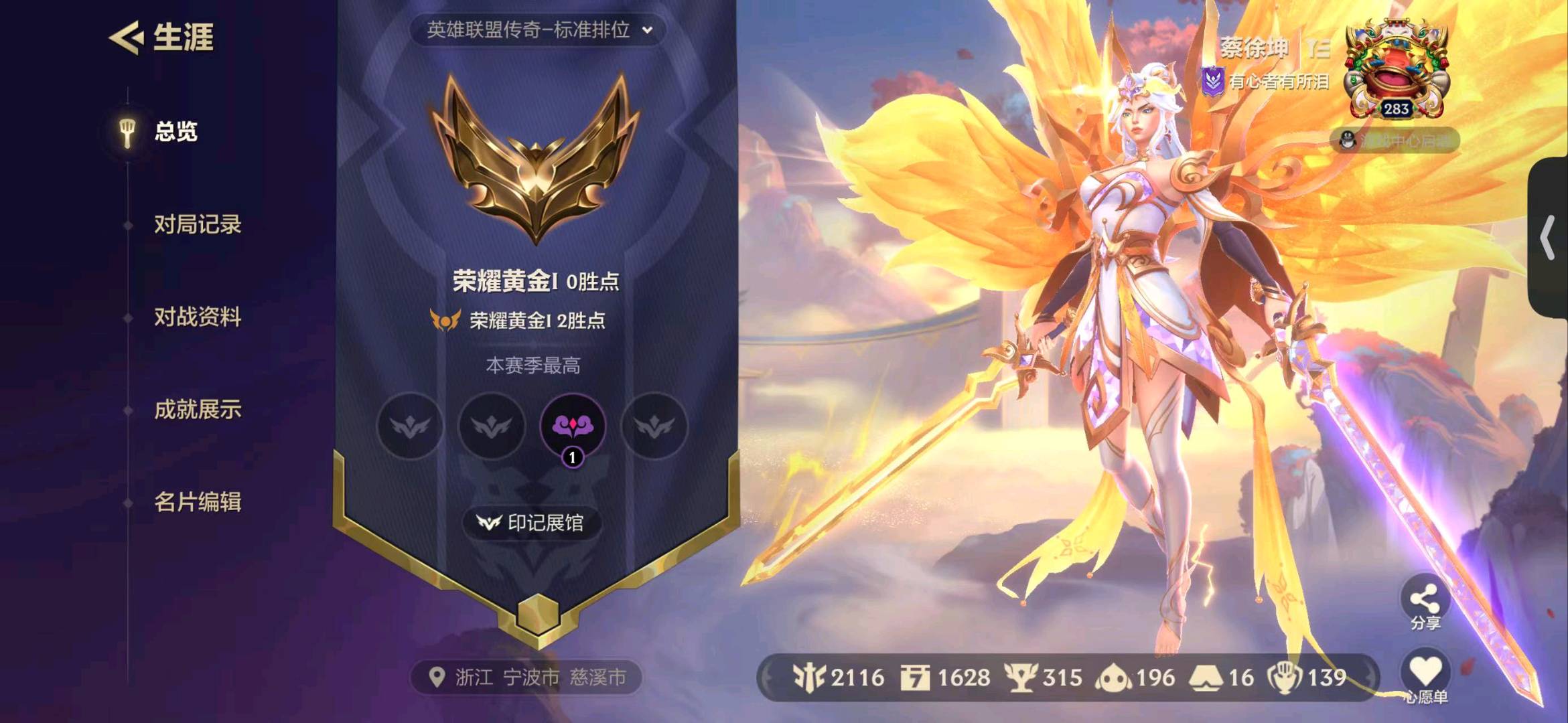 荣耀黄金/单排段位
