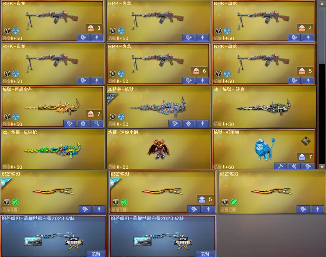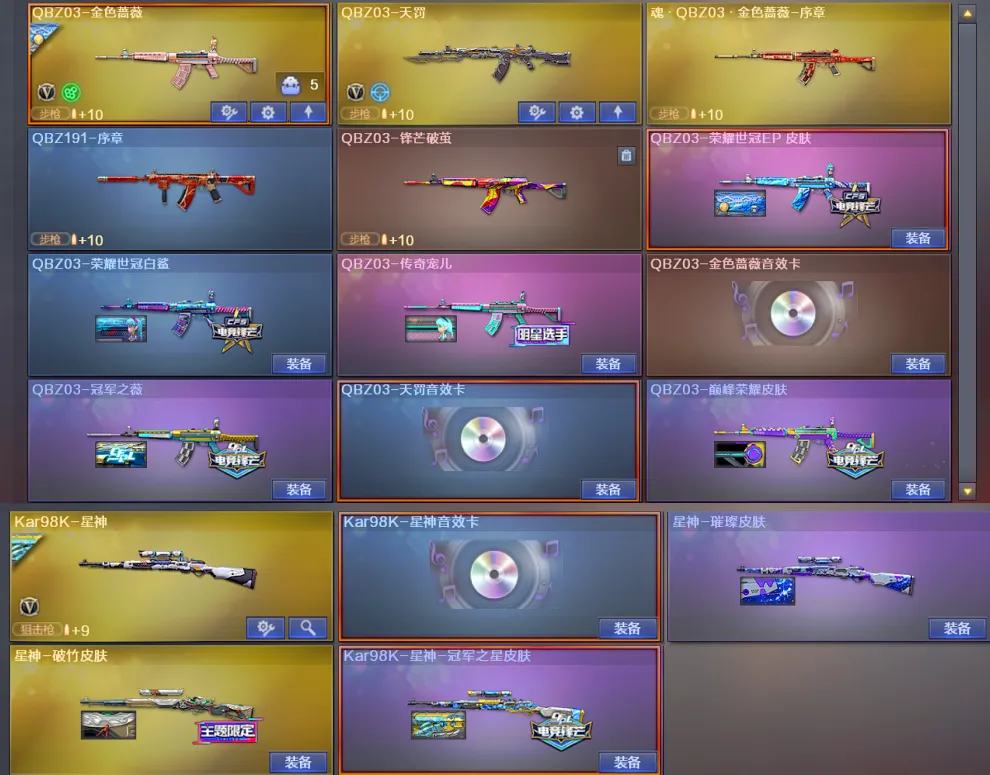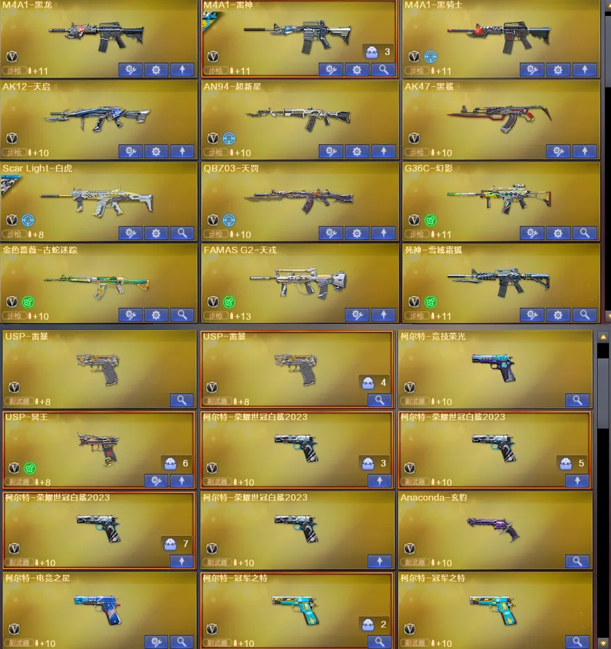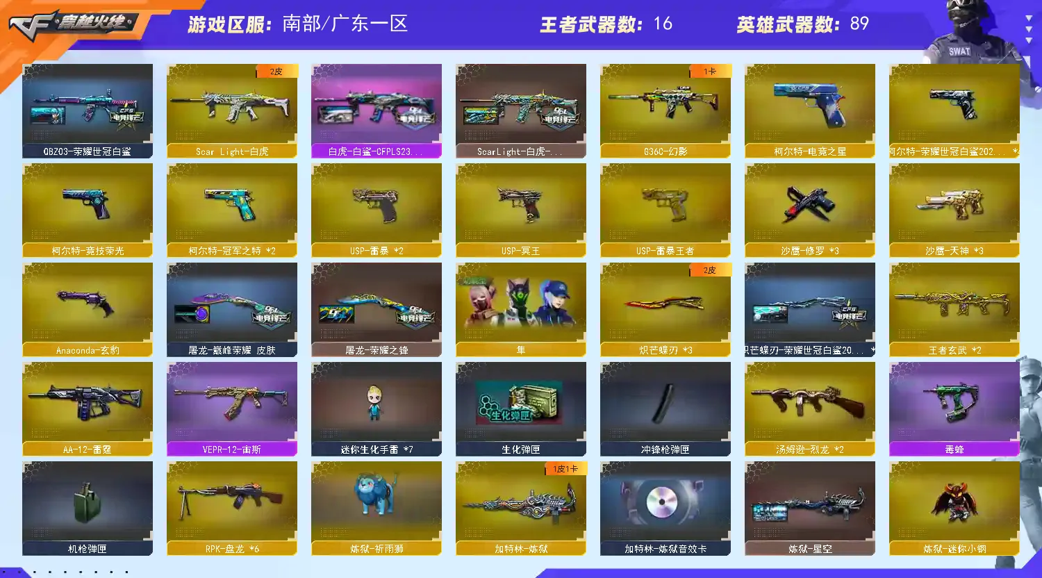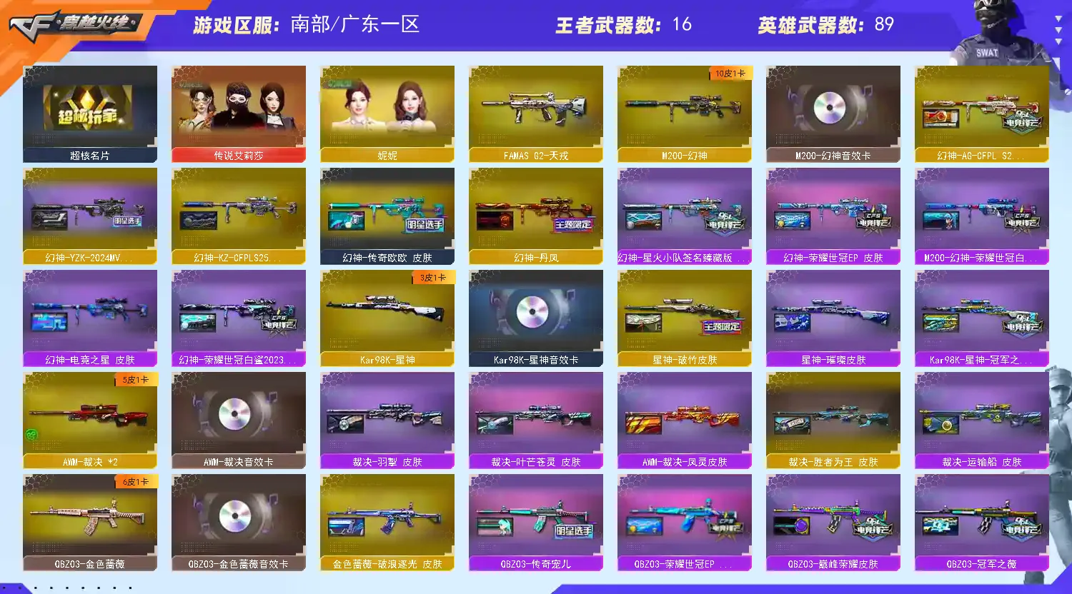 四防传说艾莉莎妮妮云悠悠,全新幻神YZK,KZ星火欧欧EP白鲨AG三件套,裁决三件套,星神冠星三件套,QBZ冠薇宠儿EP三件套,白虎白鲨电玩松狮白虎,6盘蓝狮子加炼狱卡,轮椅枪法玛斯天绒+G36幻影带音效卡,双冠特+冥王双USP,电竞柯尔特三蝴蝶刀双玄武