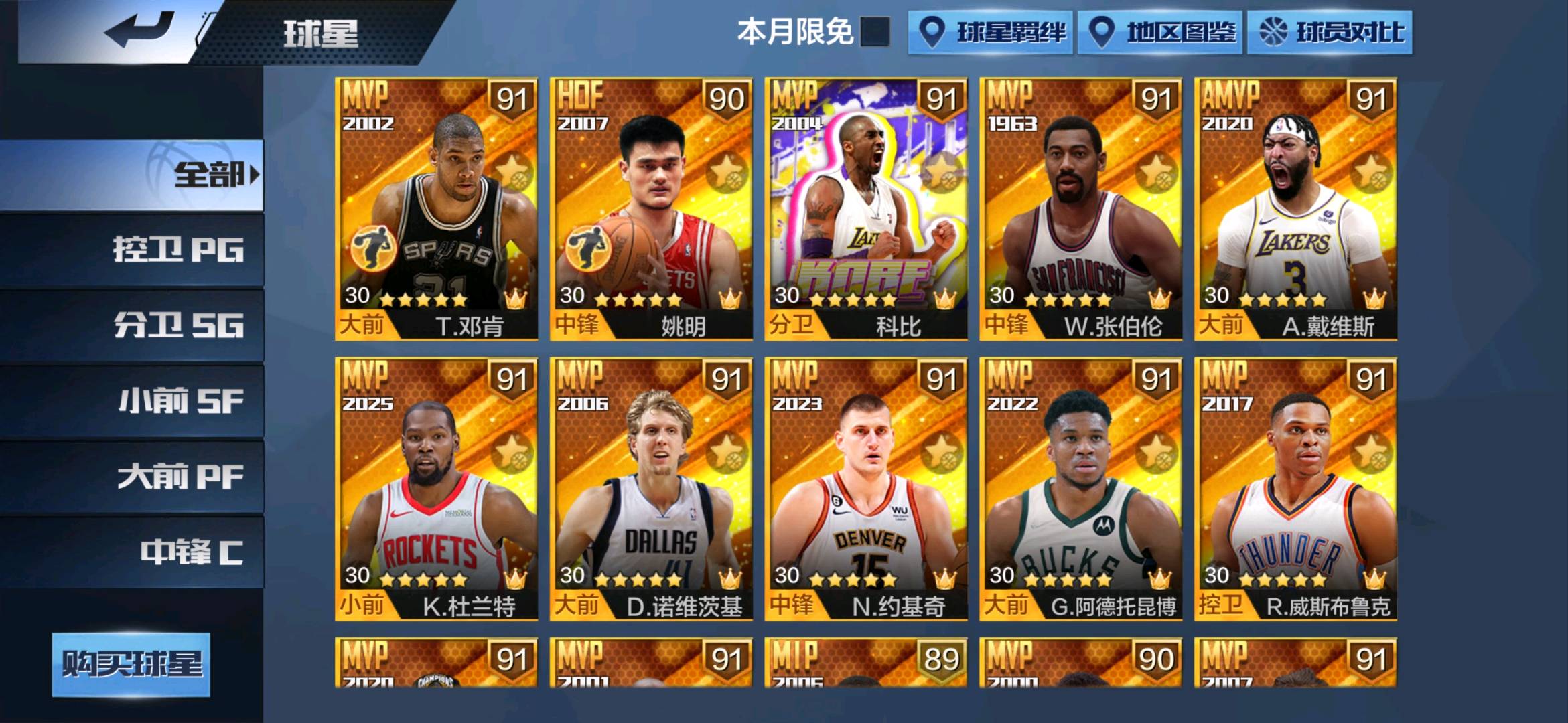 亮点:卷毛科比二专属,姚明二专属,邓肯二专属,波尔津吉斯二专属,典藏戴维斯,典藏浓眉,典藏威少,典藏纳什,典藏张伯伦,典藏诺维斯基,典藏大虫罗德曼,火箭杜兰特,硬汉科比,约基奇,冠军詹姆斯,奥尼尔,硬汉大虫,阿泰斯特,硬汉格林