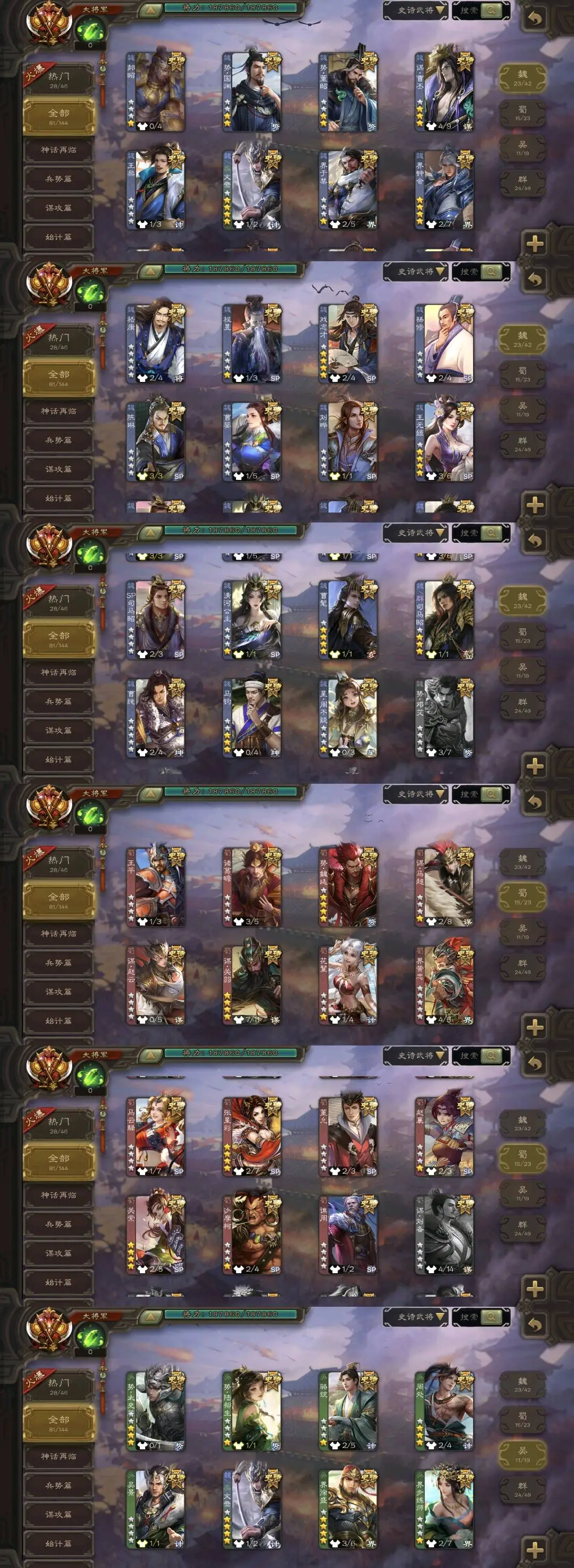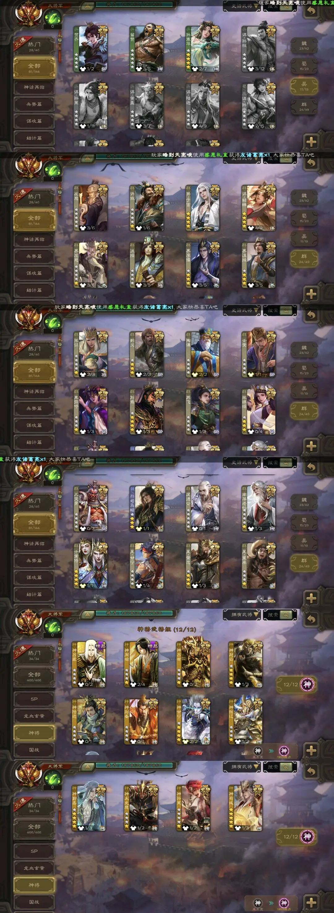 新品回廊双动态曹髦,新品至臻双形态谋关羽,势魏延,势国渊,挥剑谋曹丕,势太史慈,至臻双形态神郭嘉,至臻回廊十常侍,势于吉,势董昭,回廊文鸯,动态清河公主,动态陆郁生,界沮授,动态刘焉,动态神甘宁,回廊神荀彧,回廊神孙策,奇门孙寒华,至臻双形态界钟会,回廊界徐盛,马钧,谋貂蝉,张琪瑛,留赞,神赵云,界左慈81史诗一等大将军,
