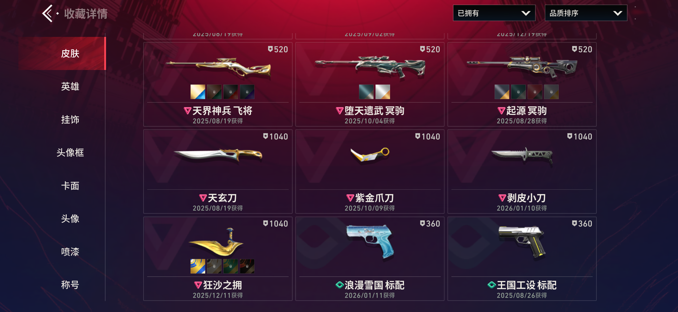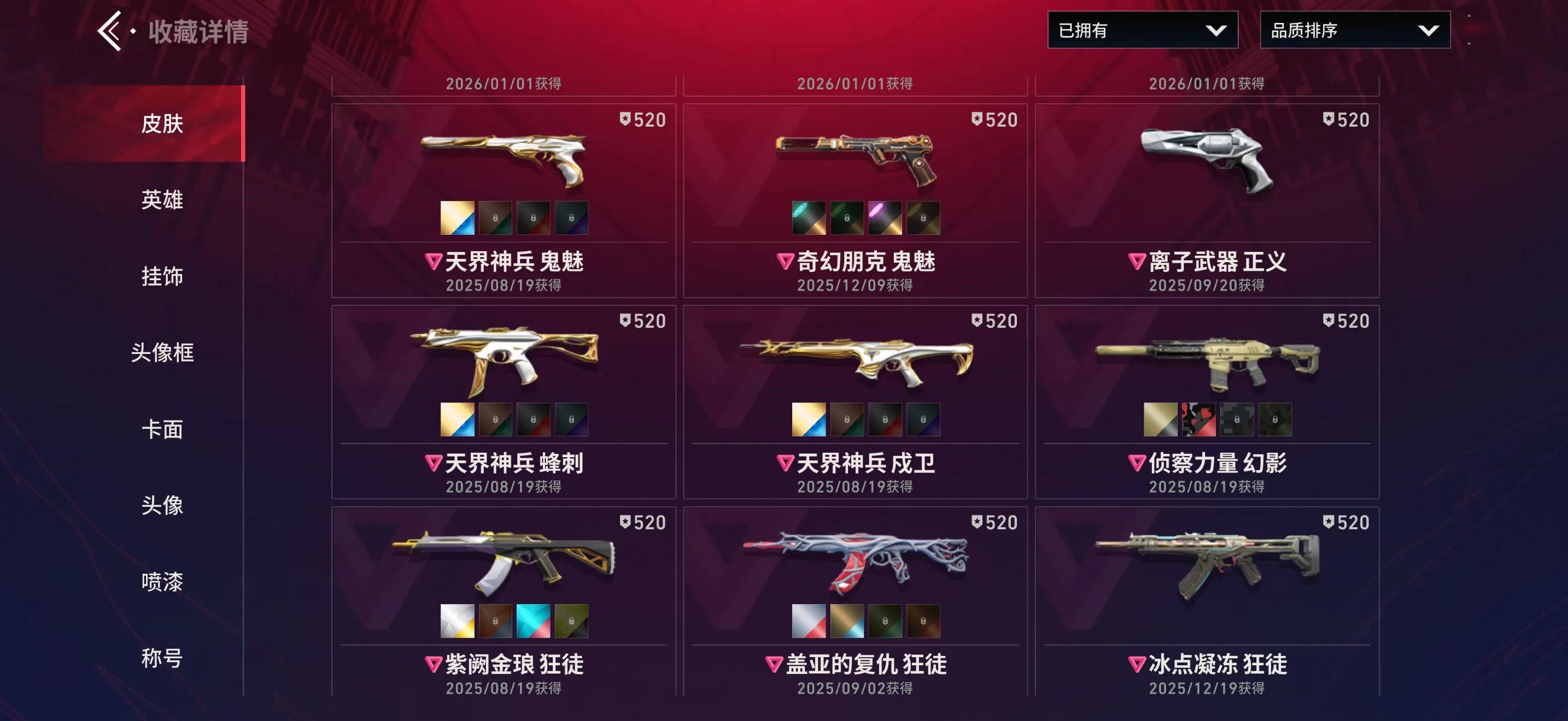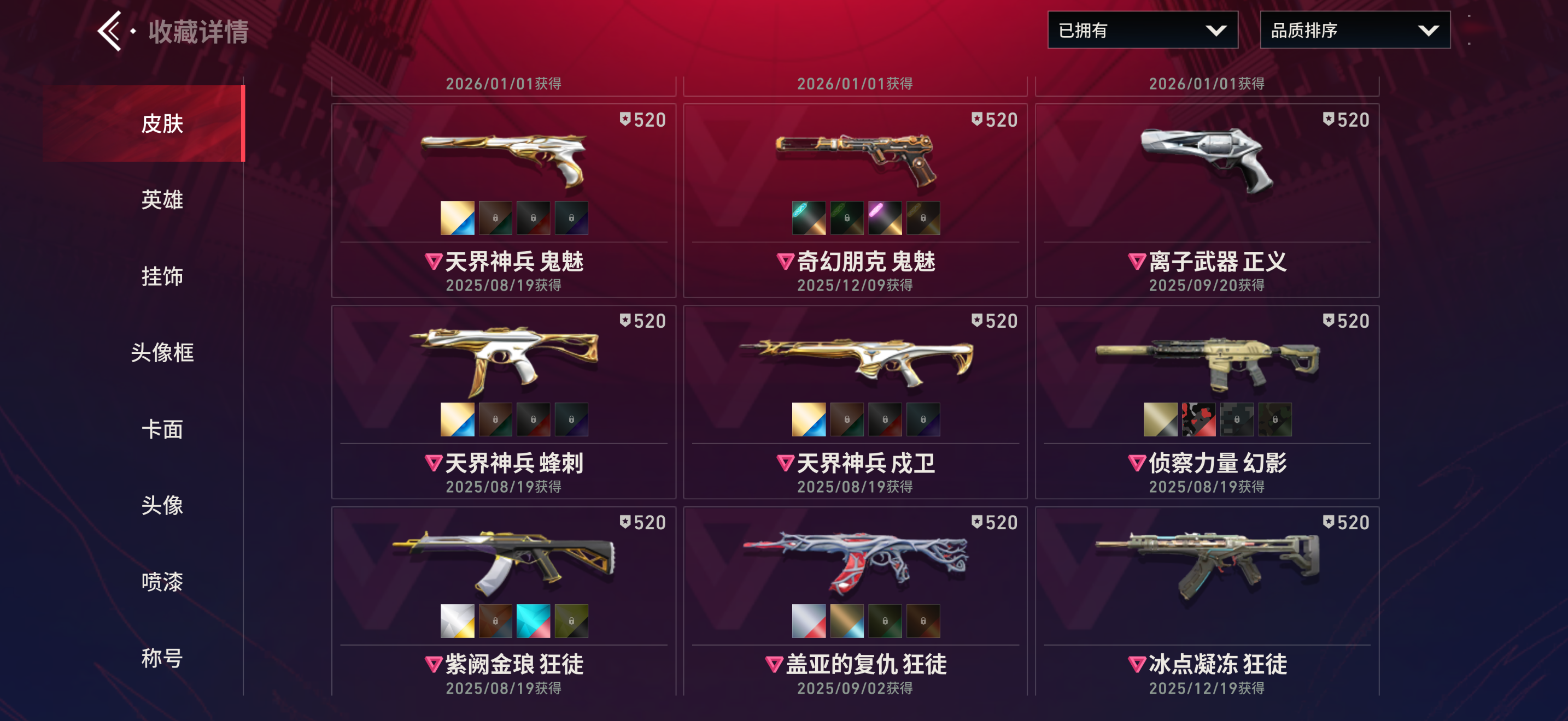 【全平台】 天花板✨侦查幻影/vct爪/天界套/紫金冰点狂徒/离火✨满热门限定✨32级收藏✨稀有内测框卡面✨省标