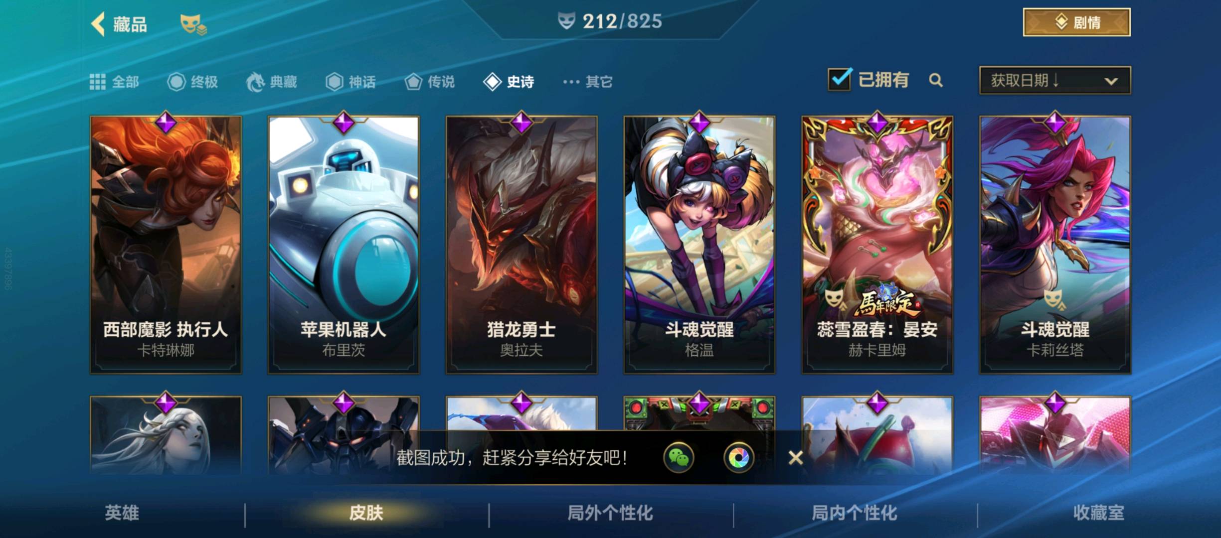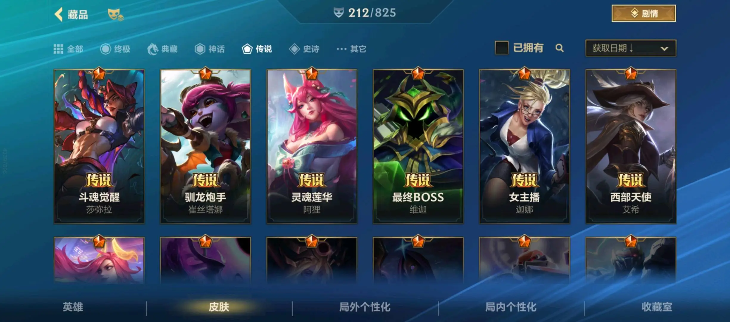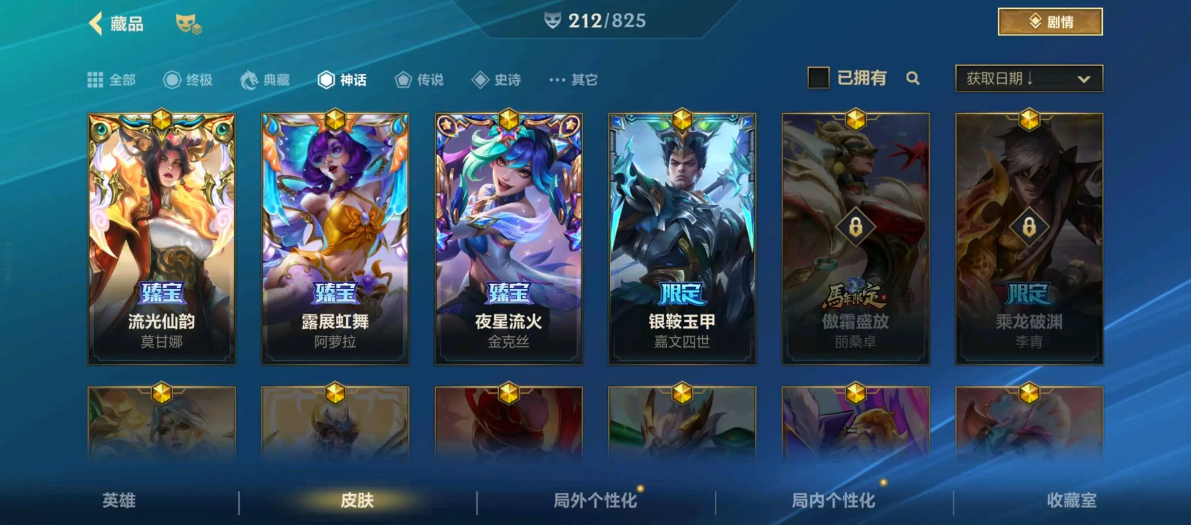 【安卓】 💖212个皮肤💖4个神话💖7个传说💖74史诗皮肤💖可以排位💖可以峡谷之巅💖