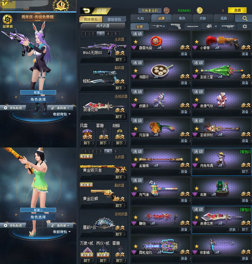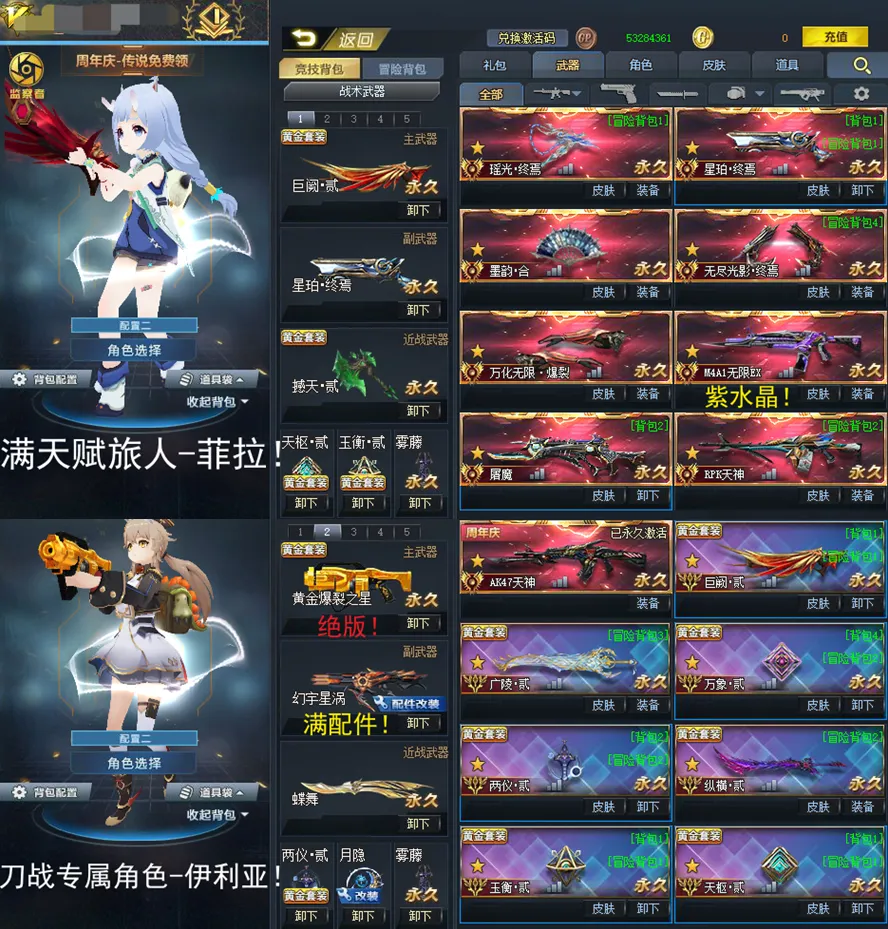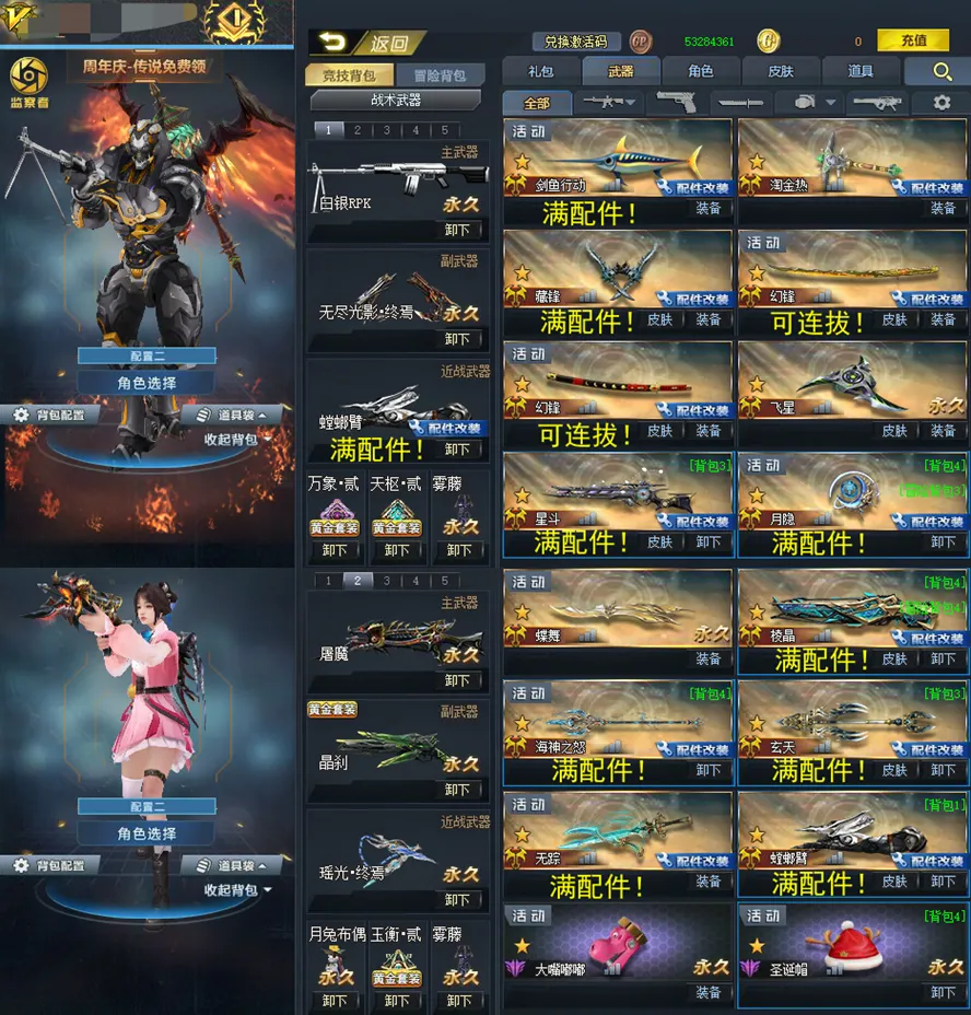 满英雄级武器:三把全满配件+染色耀光!鬼刃修罗!幻宇星涡!幽冥!弧光!2把可右键跳跳锤!123裂隙行者!123伏虎!剑鱼行动!淘金热无配件!14藏锋!2把连拔幻锋!飞星!星斗!月隐!蝶舞!棱晶!海神之怒!螳螂臂!无踪!