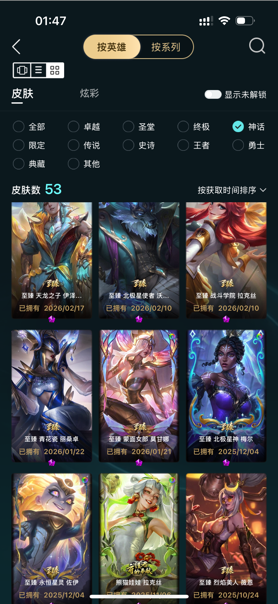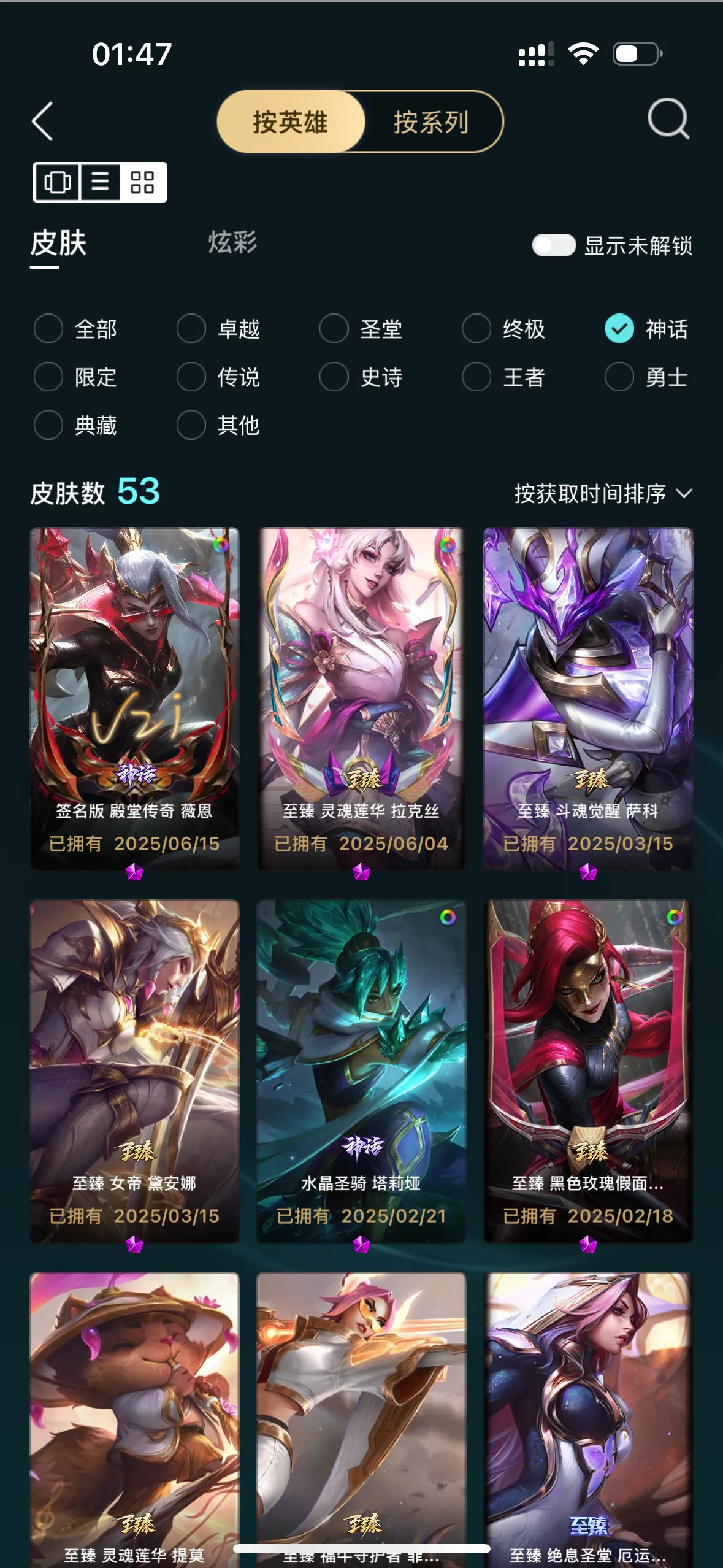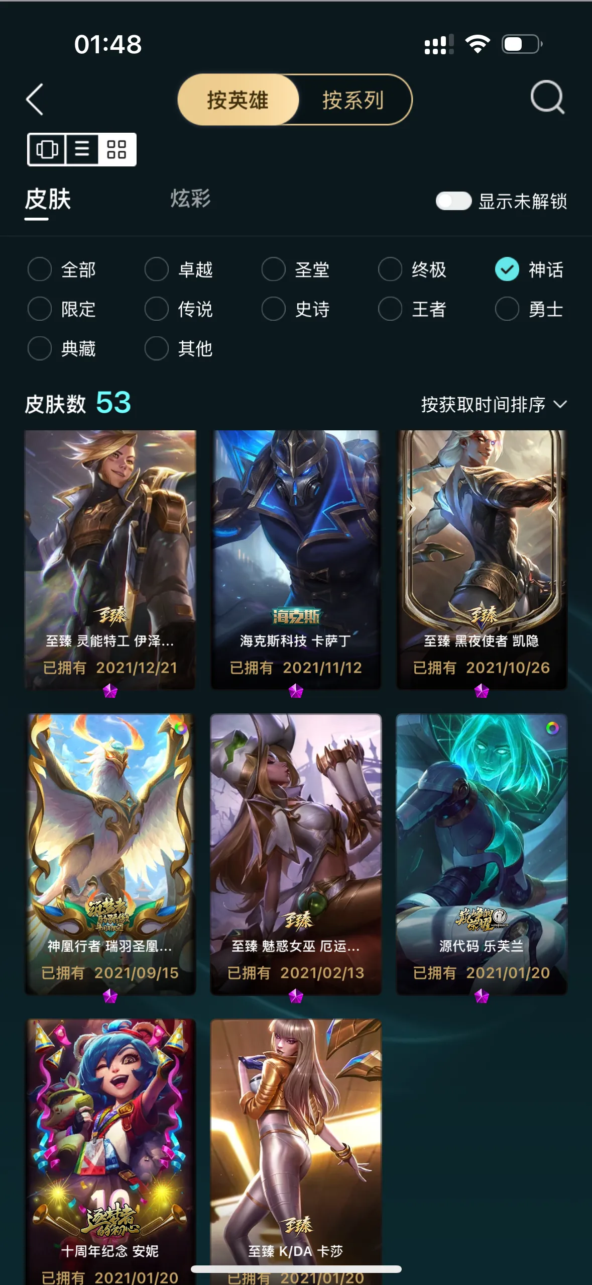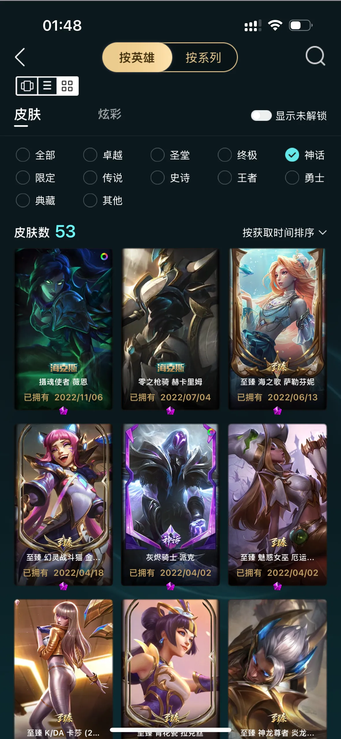 1051皮/53神话/3终极/联盟不朽卡莎/圣堂佛耶戈金克斯/踏雪寻梅莉莉娅臻彩/圣辉牛仔卢娜