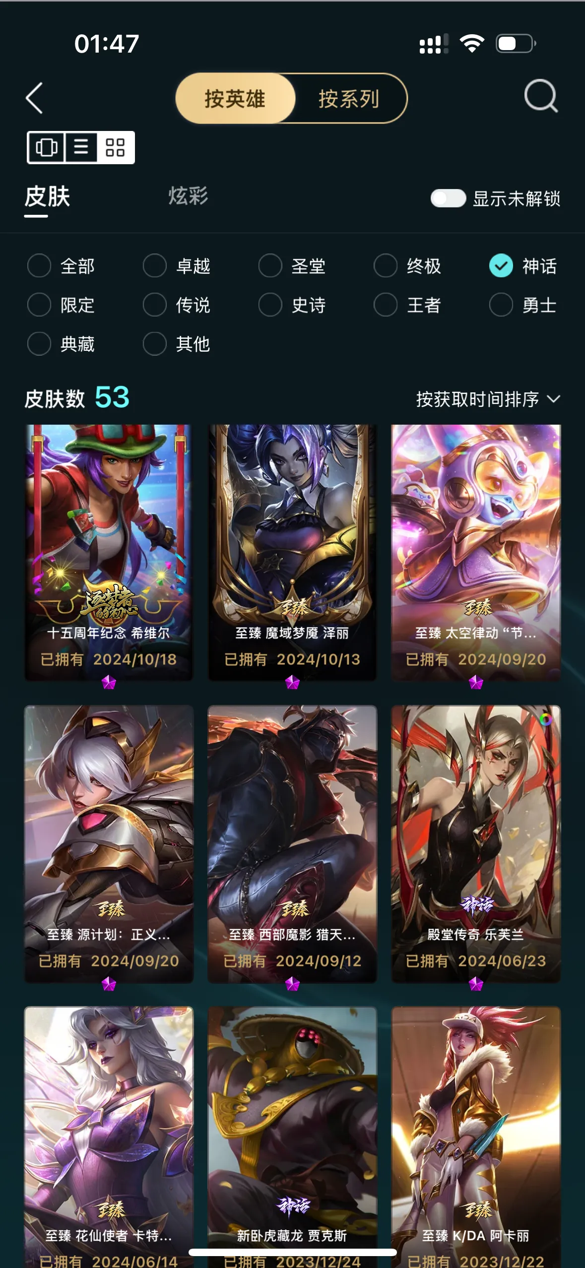 - 神话皮肤数量: 53