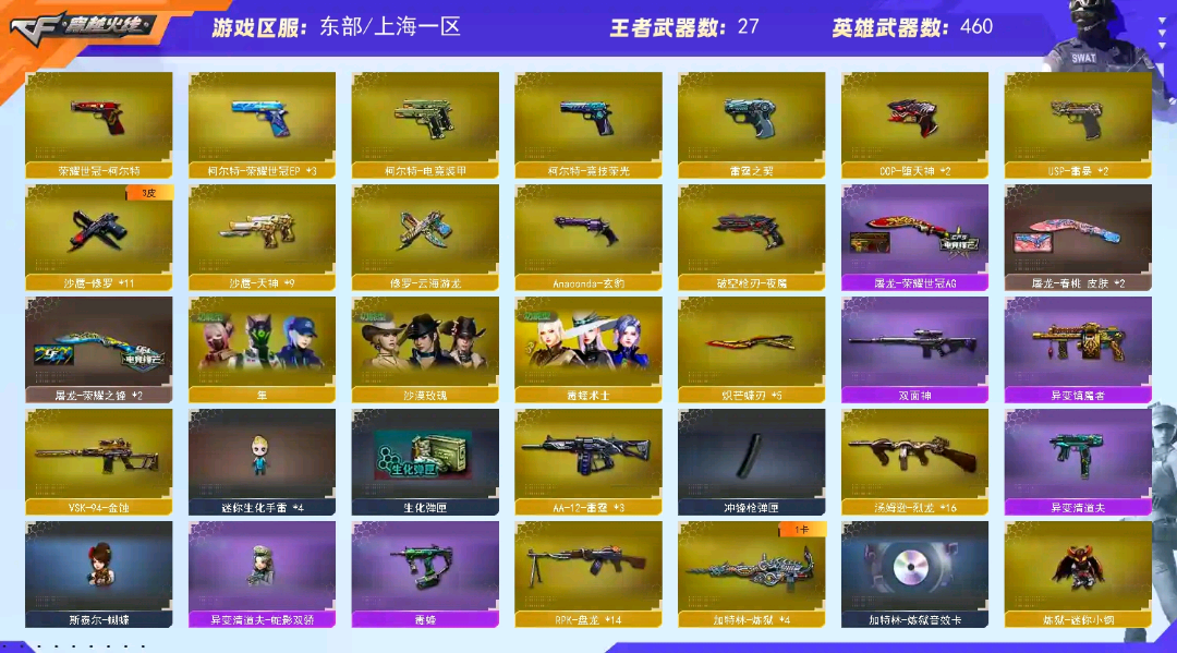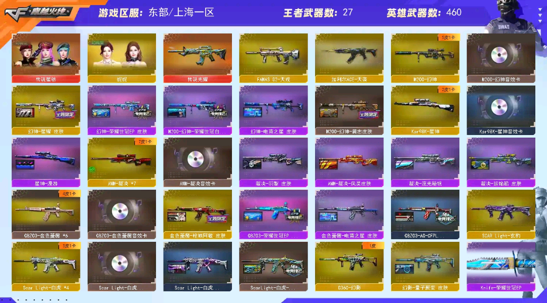天袭/天戎/幻影/传说星骇光耀/满配副手满音效/幻神6皮星神双皮裁决7皮/6盘6烈小人枪清道夫斯太尔蝴蝶5蝴蝶刀/