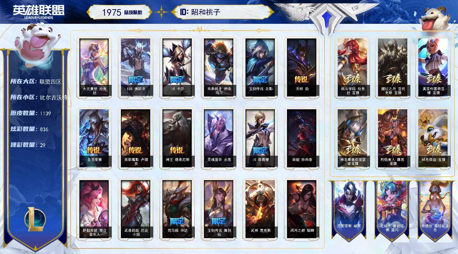 1900皮★原皮1138★大元素使★周年玉剑刀妹,男刀★EDG,IG冠军皮肤★斩星剑圣★★王国机神套★★★★★★★