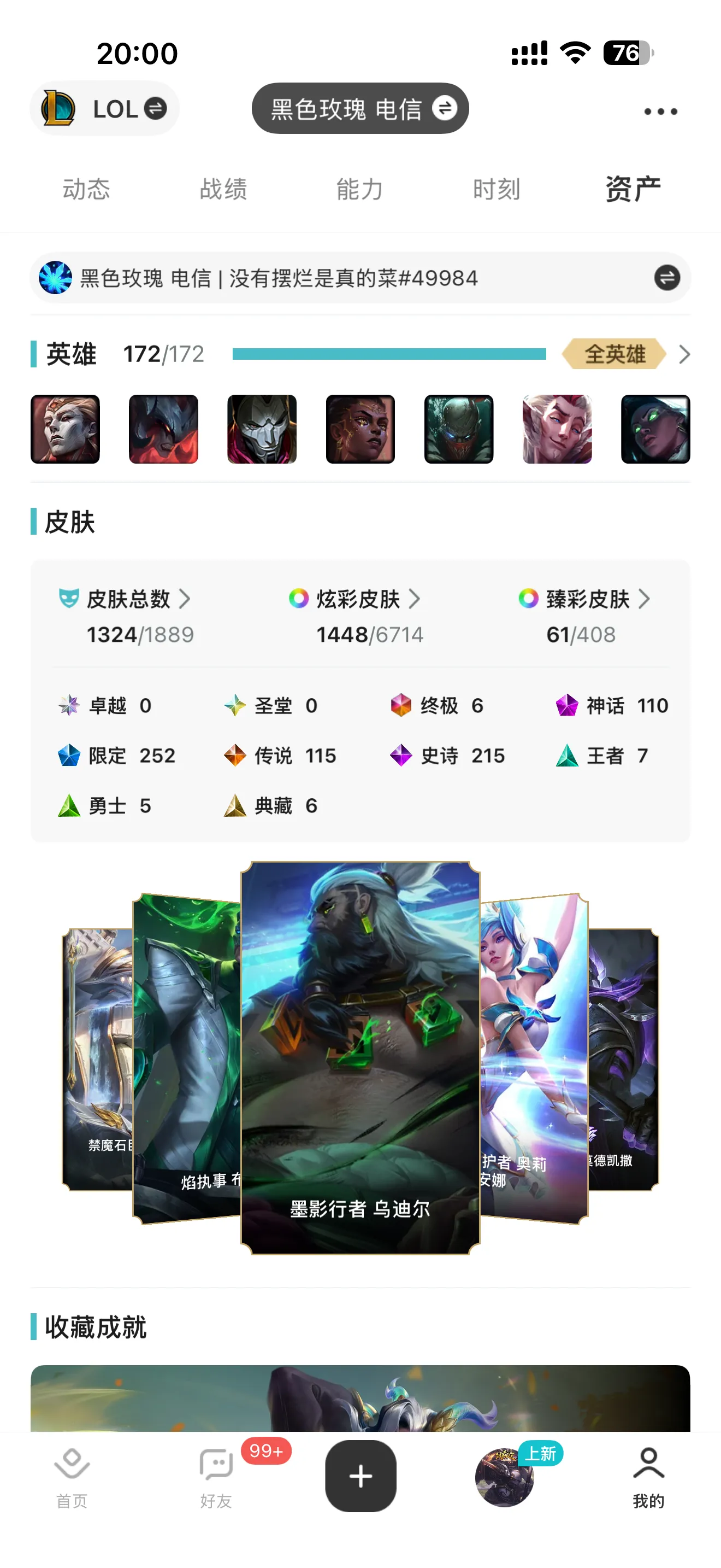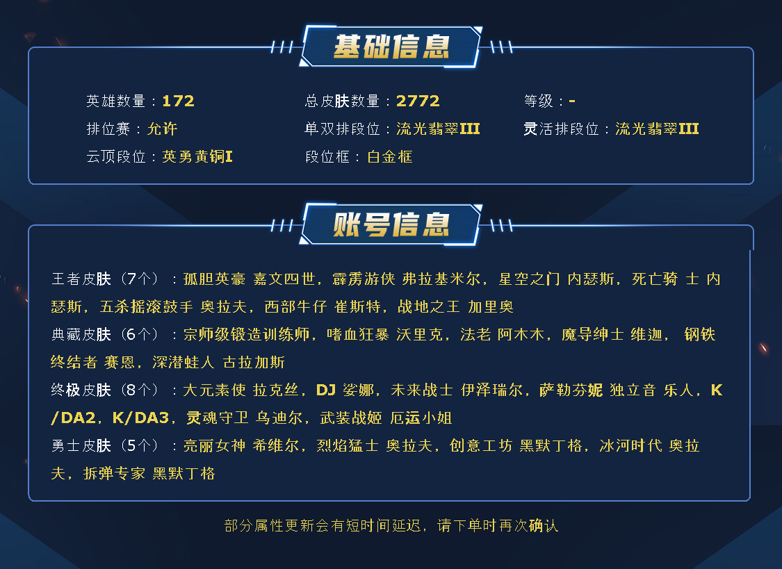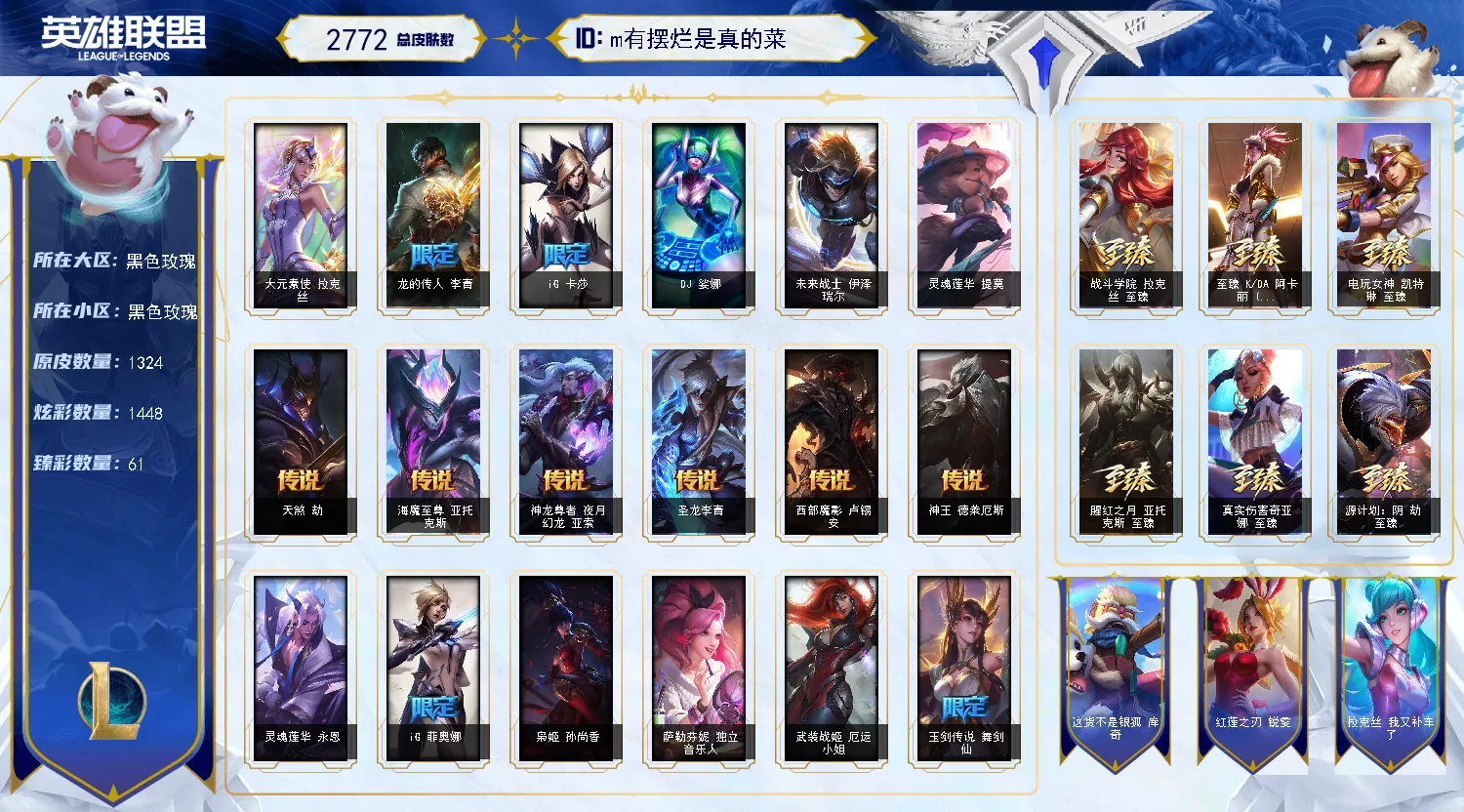 黑色玫瑰/可排位/2772皮肤/110神话/61臻彩/神话小小英雄