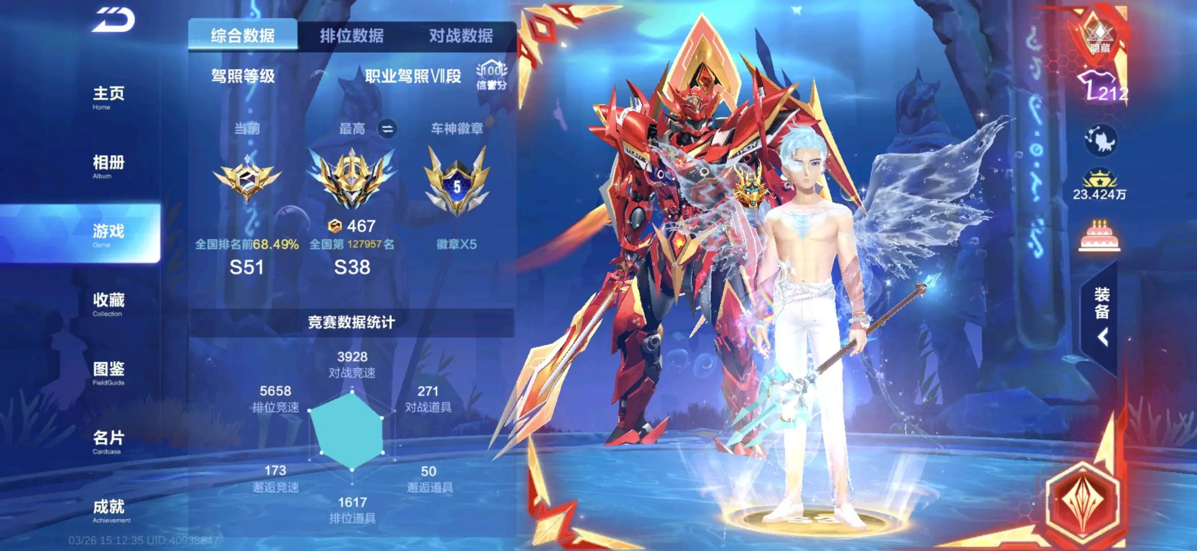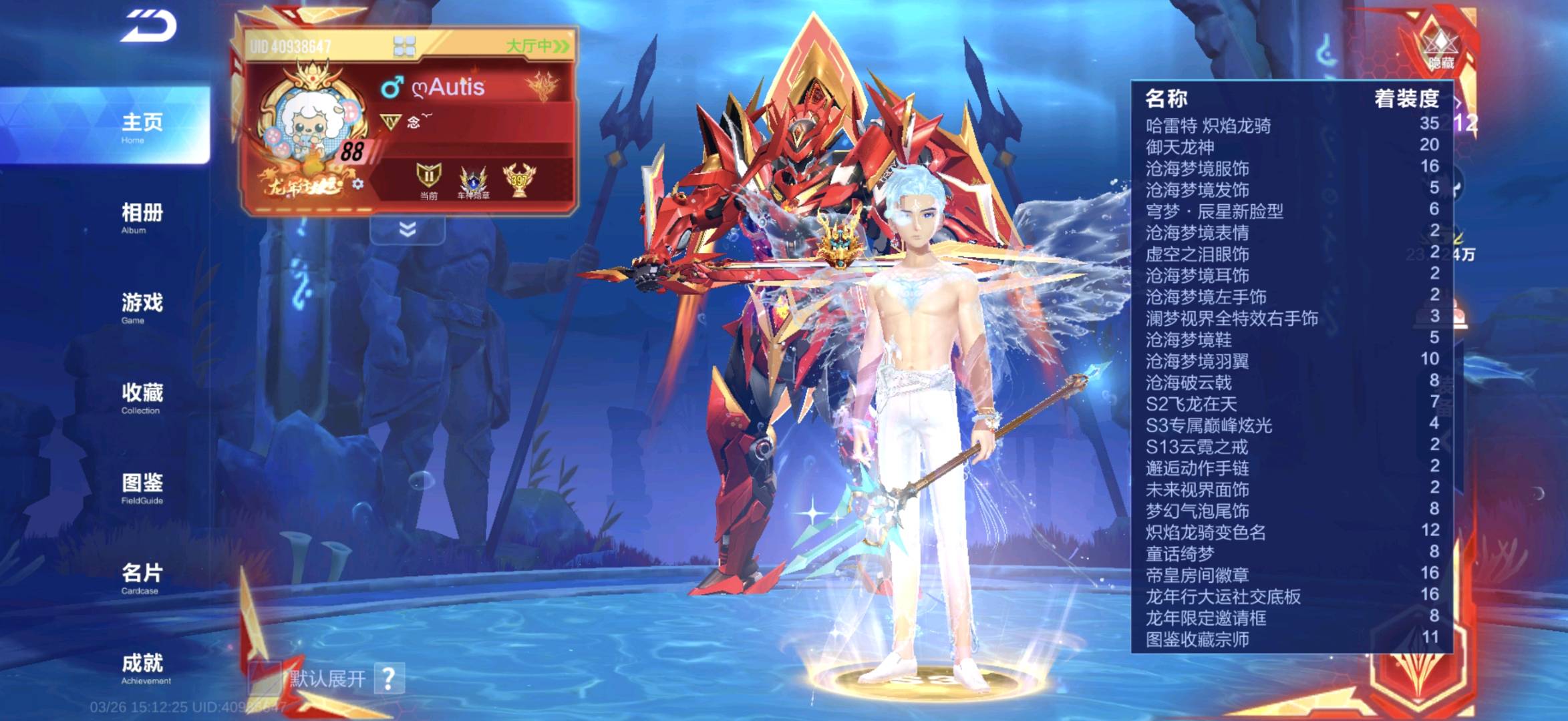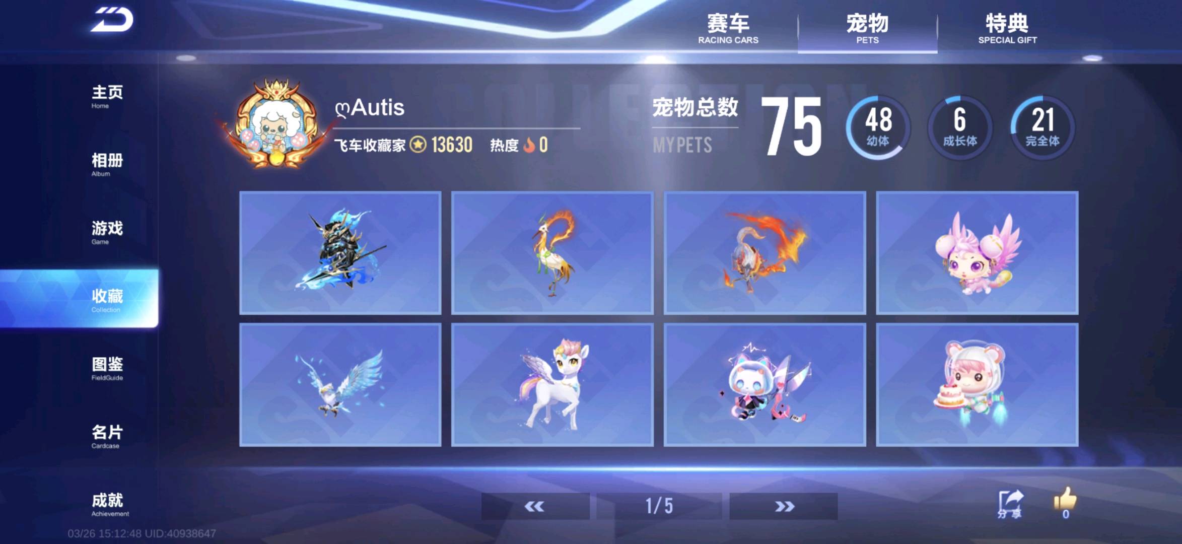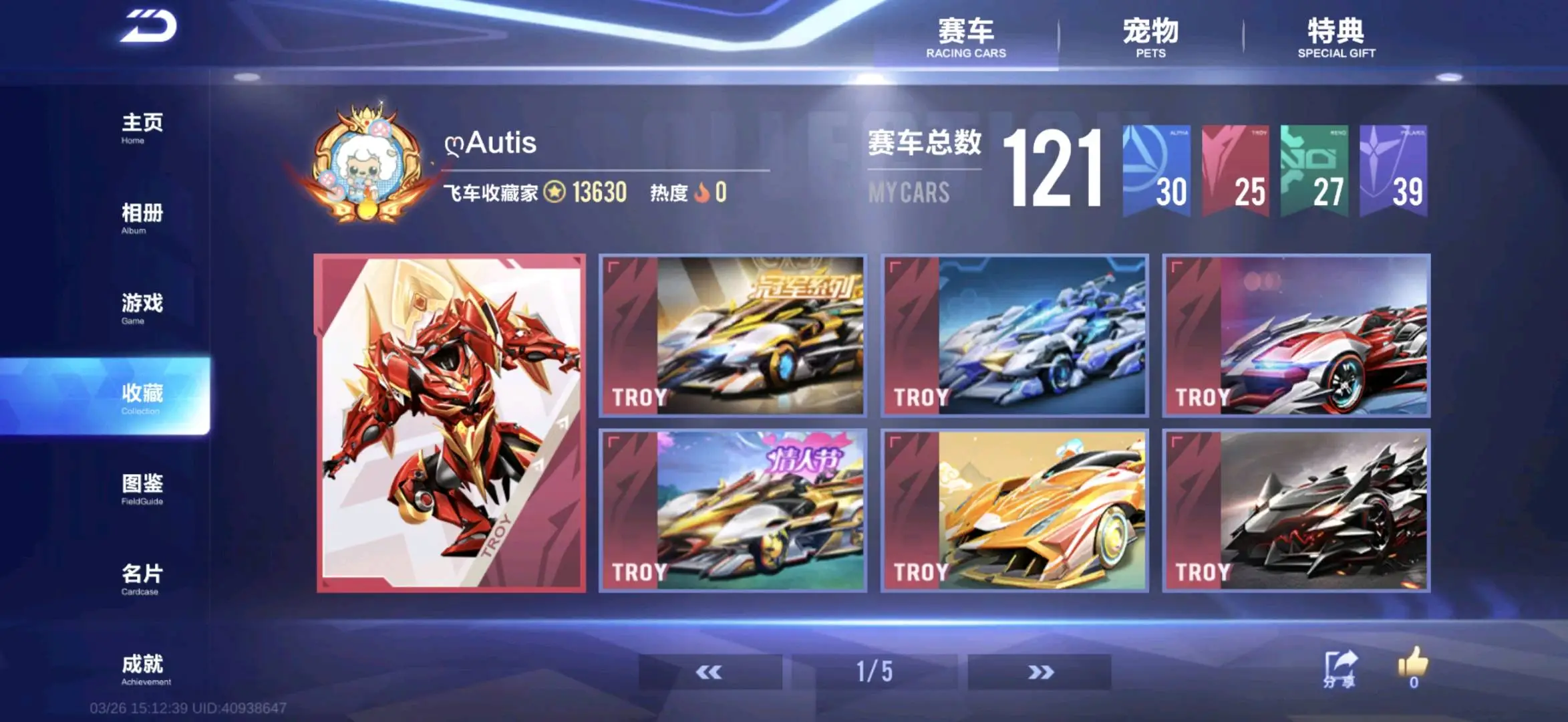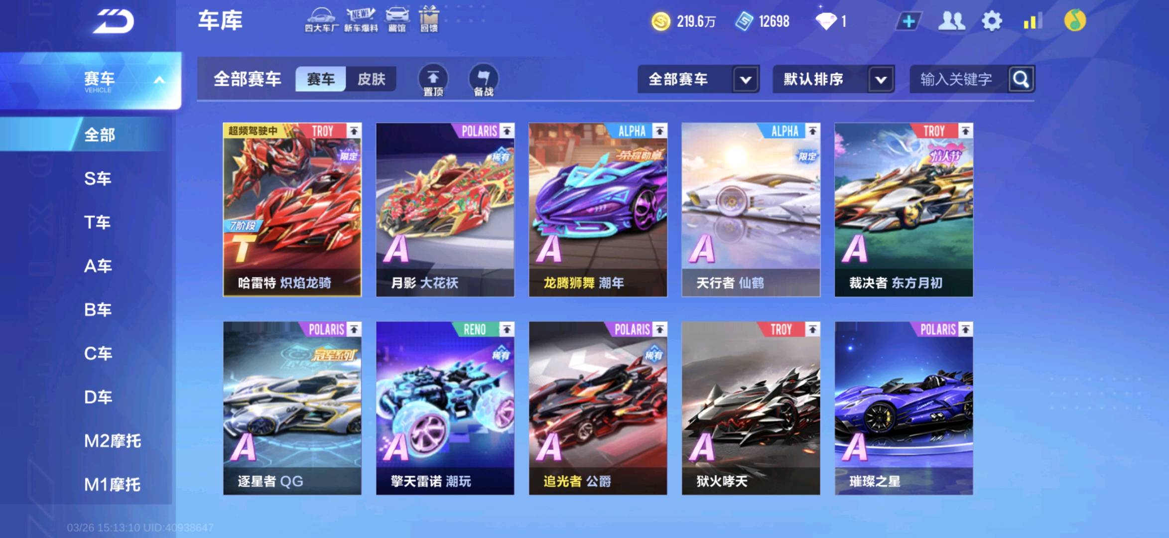 68辆A车,其中联赛车7辆。魔法套装两套。有龙年套装个性化