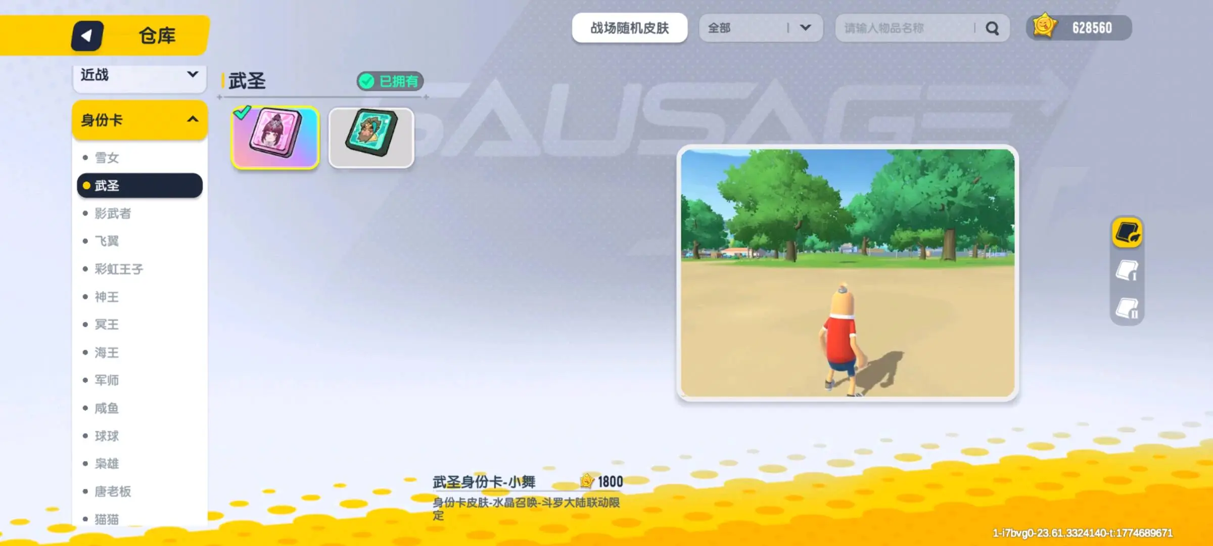 多绝版皮。小舞武圣身份卡,令迦奥特曼全套,泽塔奥特曼全套,三丽鸥全套,喜羊羊小马皮肤,机甲兔兔冲击