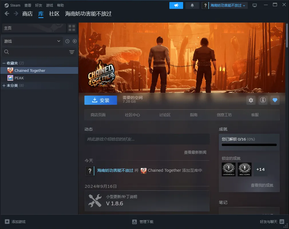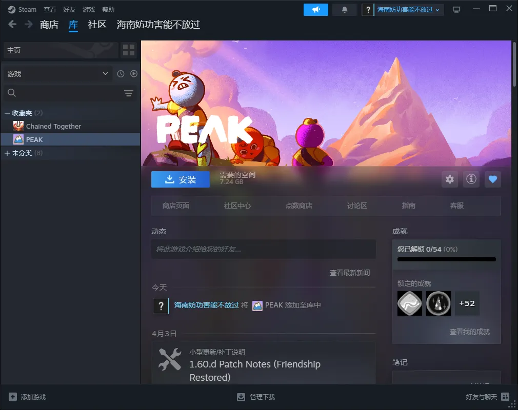 俩款游戏⭐推荐包天⭐peak⭐链在一起⭐可主动加好友⭐可联机⭐消费满五美元⭐可加好友⭐好友功能