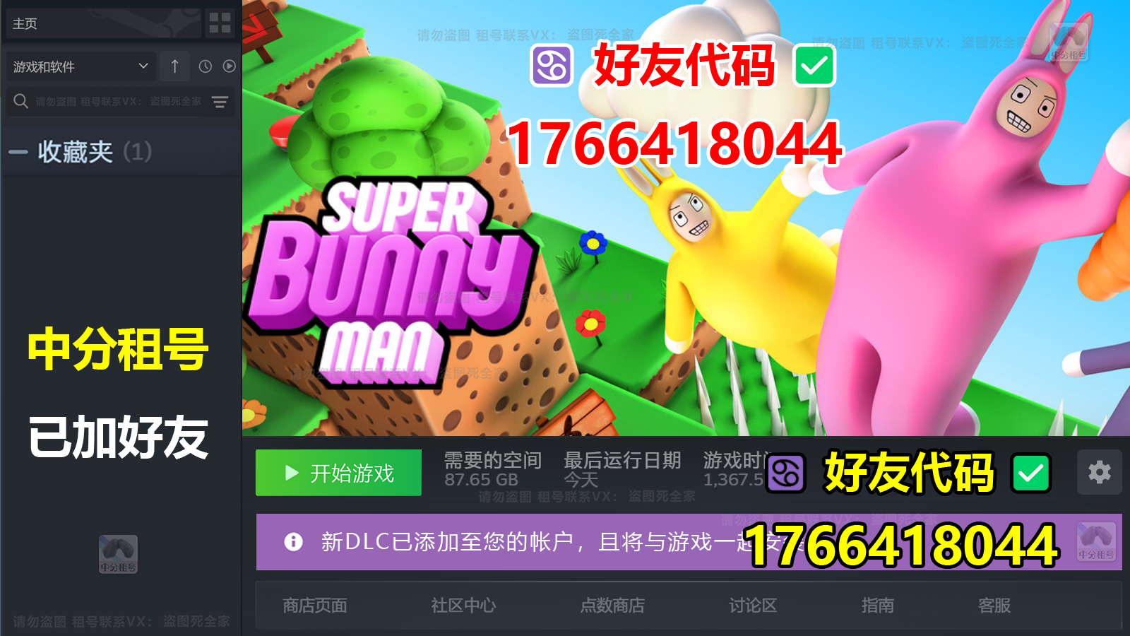 超级兔子人✨已加好友❤️中分租号♋好友代码✅1766418044✨