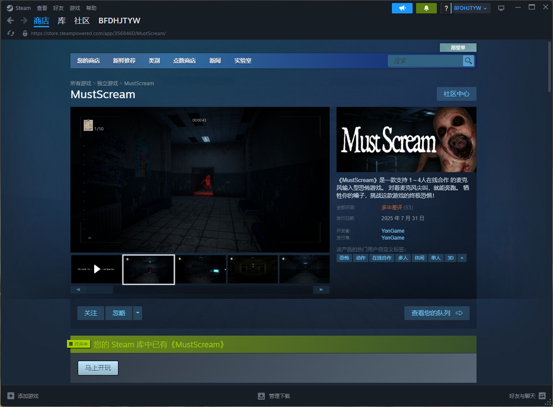 【租2送2】《MustScream-必须尖叫》终极版!可联机!麦克风尖叫